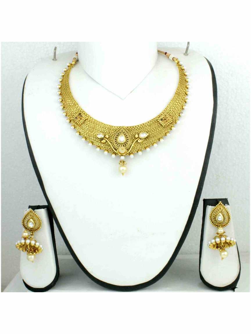 POLKI STONES NECKLACE SET MADE IN BRASS & COPPER ALLOY. STYLE NUMBER OF THIS DESIGN IS 12553