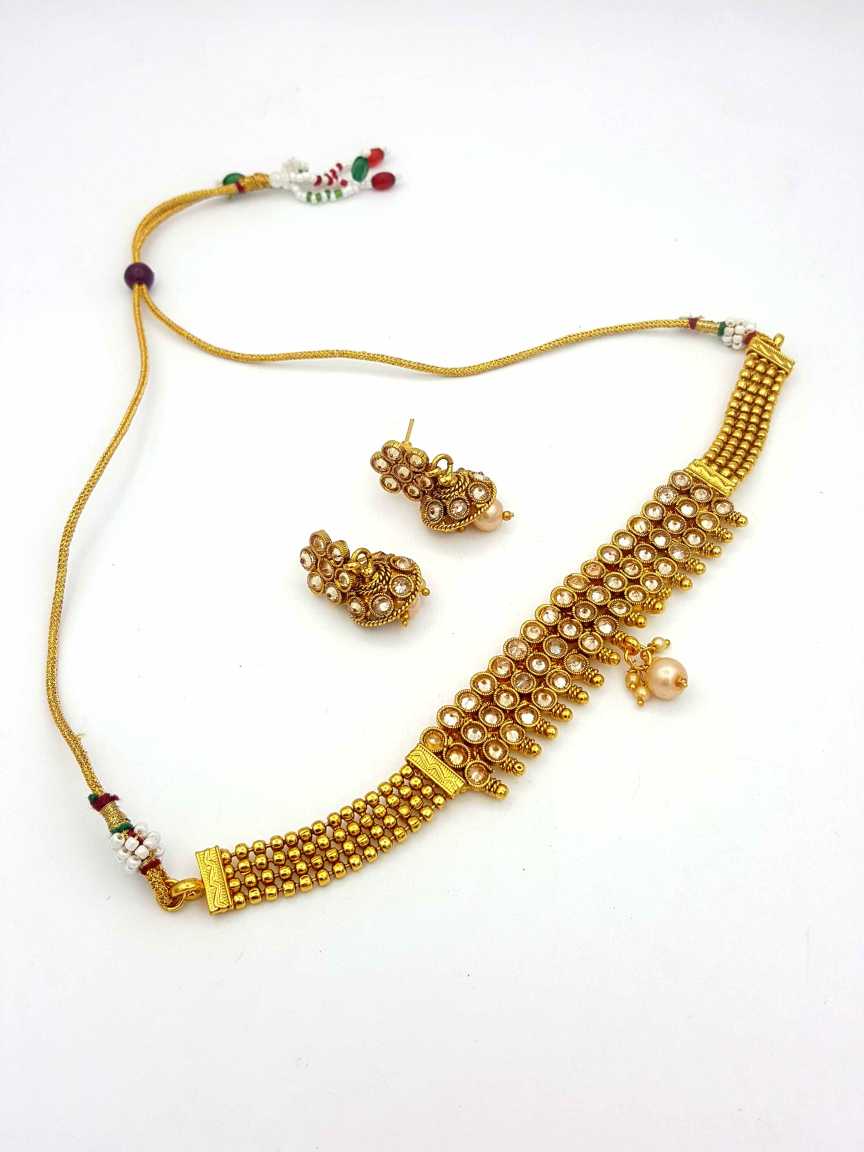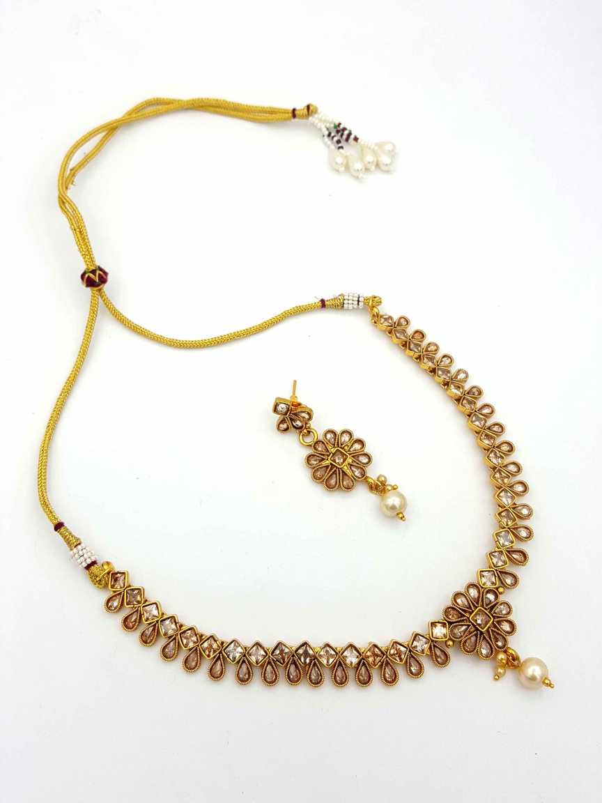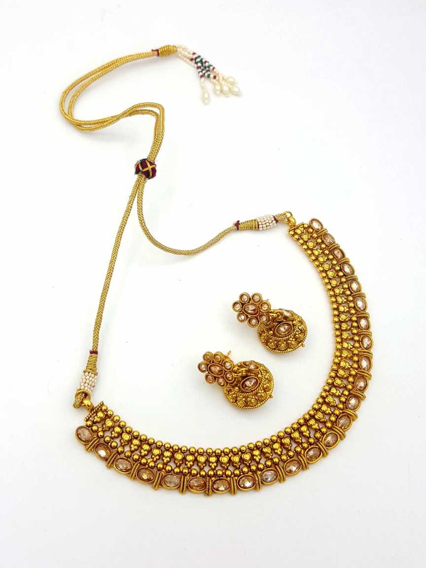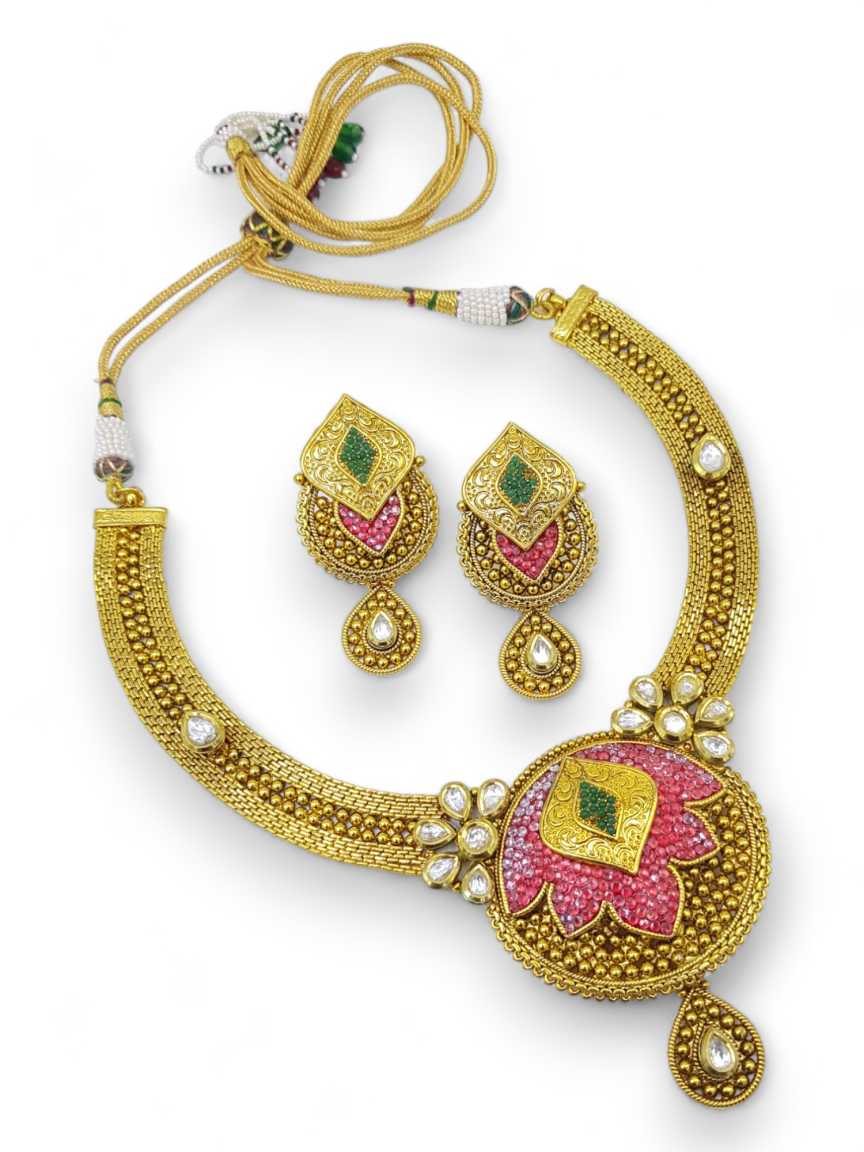 POLKI STONES NECKLACE SET MADE IN BRASS & COPPER ALLOY. STYLE NUMBER OF THIS DESIGN IS 12850
