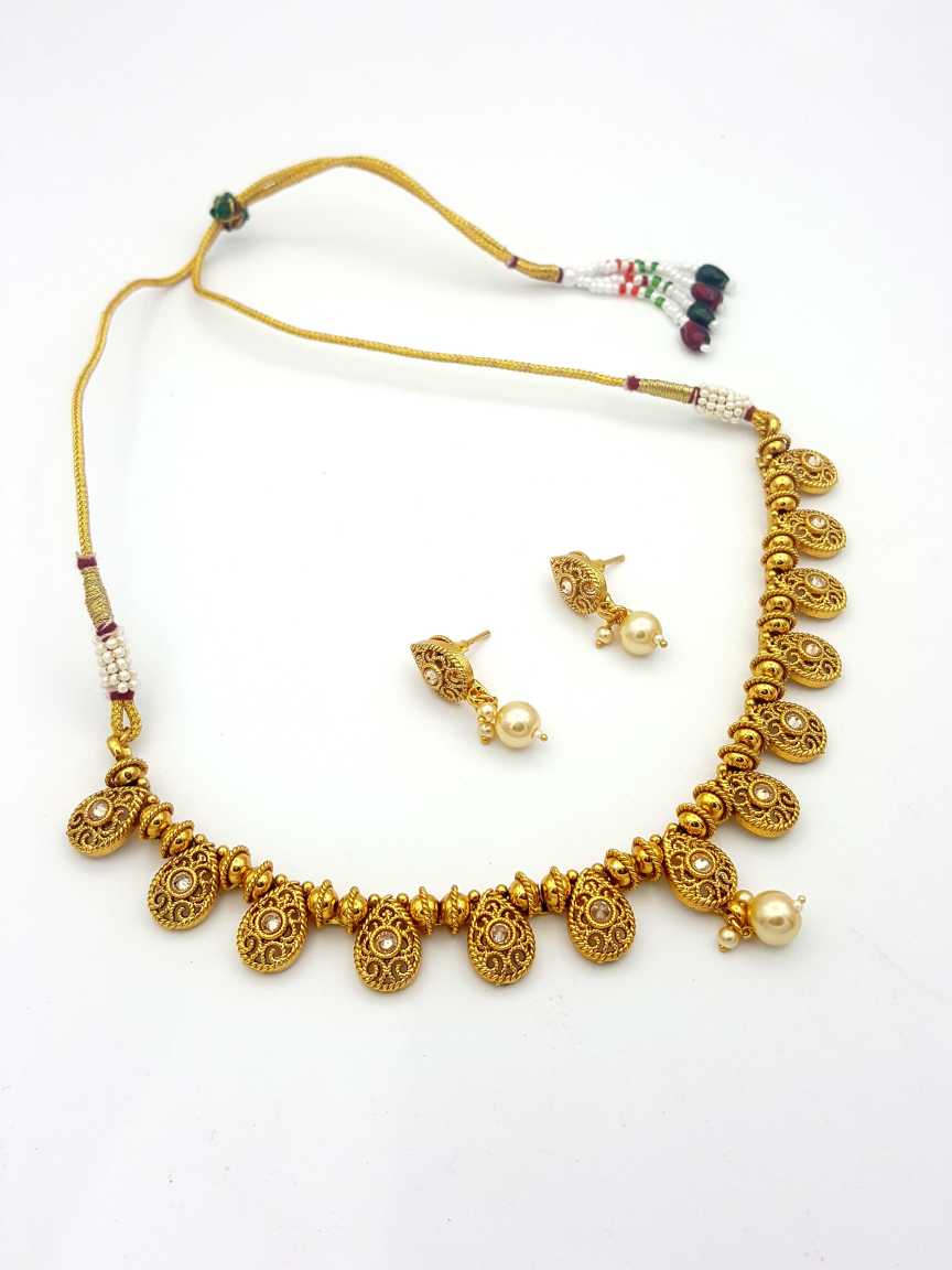 POLKI STONES NECKLACE SET MADE IN BRASS & COPPER ALLOY. STYLE NUMBER OF THIS DESIGN IS 17826